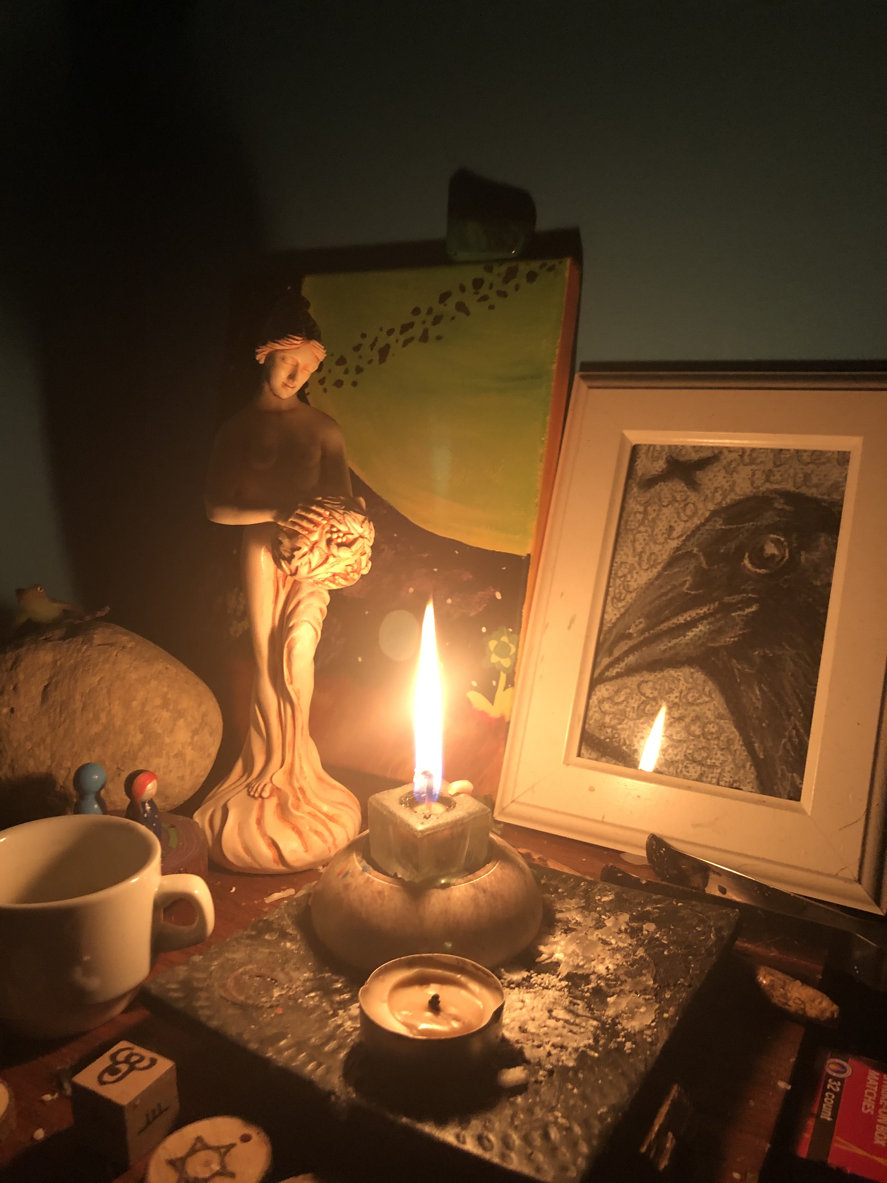 While this can easily be done during Samhain, it is Right Practice to honour the Ancestors more frequently. One can put a dog collar, or a dog biscuit, or really any article of remembrance on an Ancestor altar. It does not have to be large – it just has to be.